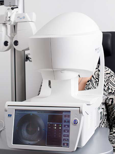 Da unsere Geräte dem neuesten technologischen Standard entsprechen, sind diese untereinander vernetzt und geben automatisch alle Werte an unseren Visioffice weiter. Der Punkt des schärfsten Sehens wird hier genau ausgemessen.