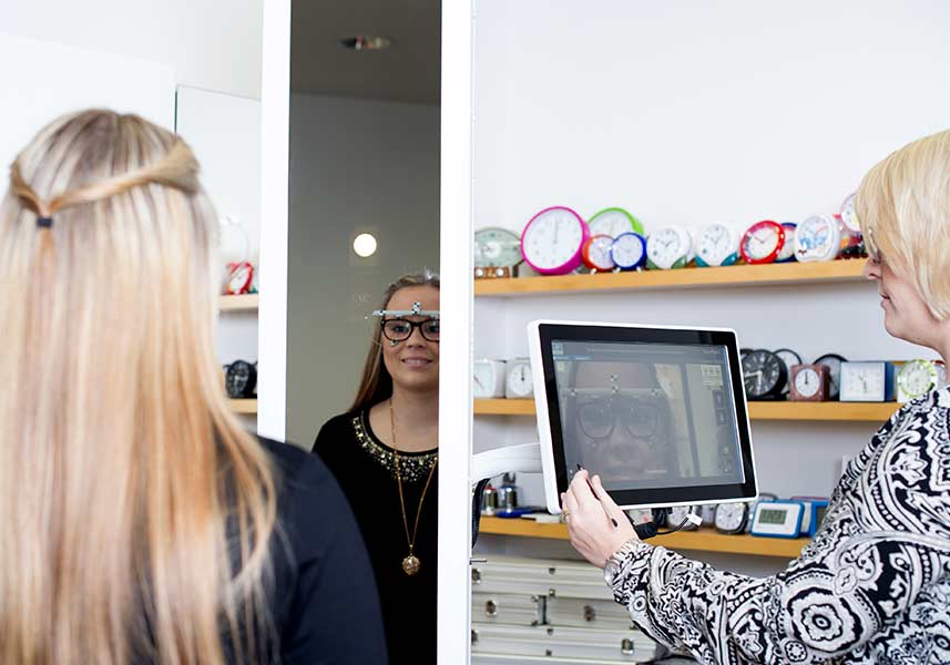 Danach geht es weiter; Ihre Brillenfassung wird gescannt, damit die Gläser auf 1/100 mm passgenau geschliffen werden können.