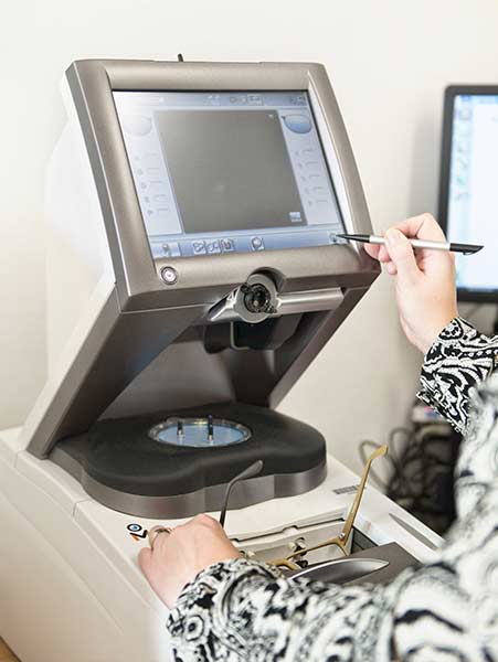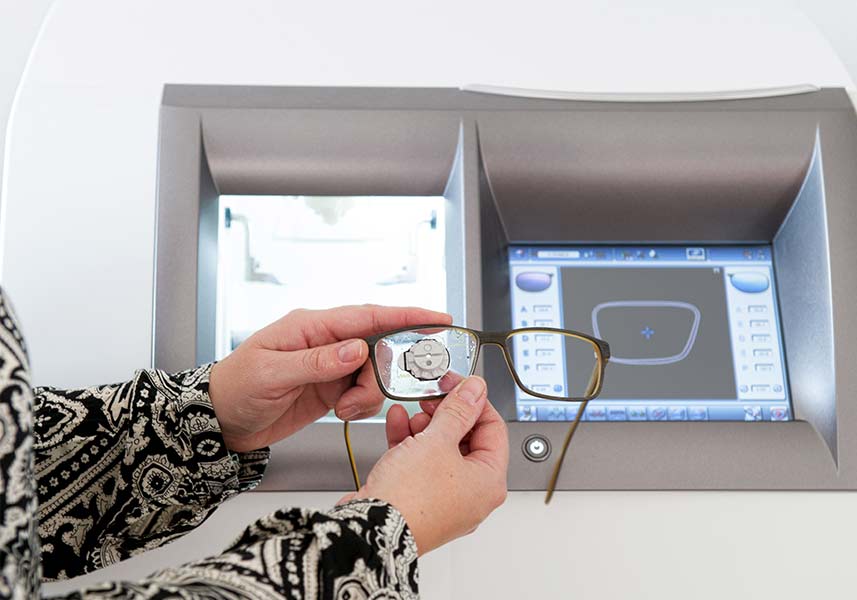 Nachdem Ihre Brillengläser in Rohzustand geliefert wurden, setzen Ihre Werte die Reise in unserer Werkstatt fort. Zuerst werden voll automatisch die genauen Stärken Ihrer Gläser bestimmt.