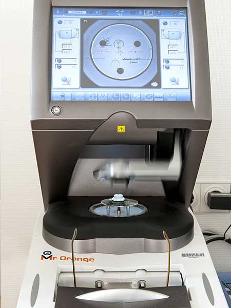 Da unsere Geräte dem neuesten technologischen Standard entsprechen, sind diese untereinander vernetzt und geben automatisch alle Werte an unseren Visioffice weiter. Der Punkt des schärfsten Sehens wird hier genau ausgemessen.