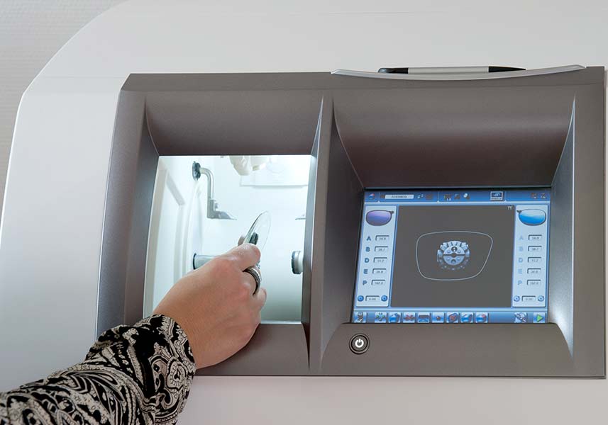 Nachdem Ihre Brillengläser in Rohzustand geliefert wurden, setzen Ihre Werte die Reise in unserer Werkstatt fort. Zuerst werden voll automatisch die genauen Stärken Ihrer Gläser bestimmt.